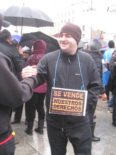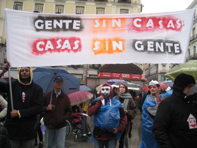A continuación, y a pesar de la lluvia, realizamos una marcha desde Callao a la Puerta del Sol donde se realizó u flashmob sobre la escasez de la vivienda y la problematica de las personas para poder acceder a ellas. La consigna más repetida fue . NADIE SIN HOGAR